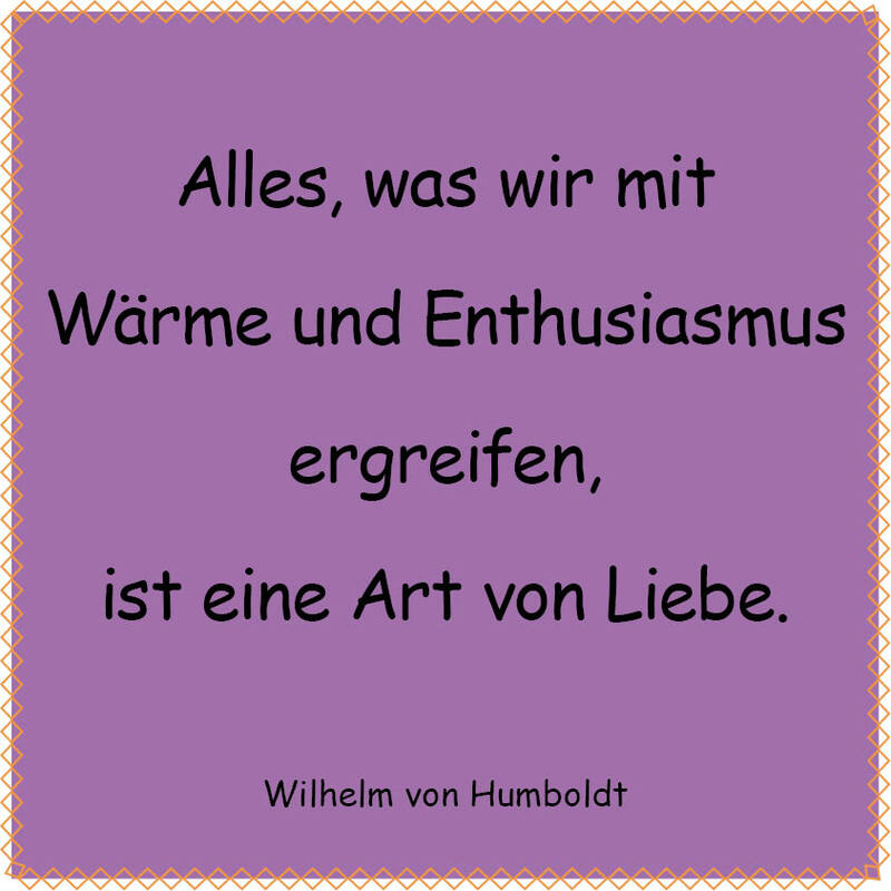 „Menschen, mit der Stärke Enthusiasmus, können sich für viele Dinge begeistern und ihnen fällt es leicht andere mit ihrer Begeisterung anzustecken. Sie sind lebendig, aktiv und energiegeladen und leben das Leben wie ein Abenteuer. Sie gehen Dinge aus vollem Herzen an und haben an vielem Freude.“ Stärke: Enthusiasmus • Lexikon der Positiven Psychologie (psychologie-des-gluecks.de)